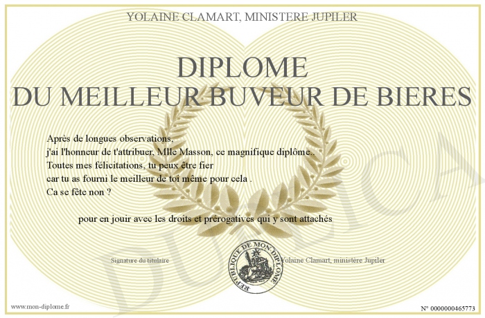 Envoyez par email votre Diplôme du meilleur buveur de bières personalisé