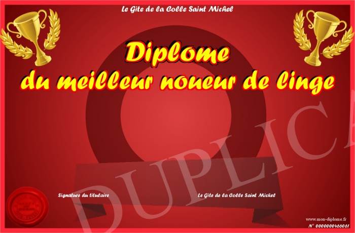 Envoyez par email votre Diplôme du meilleur noueur de linge personalisé