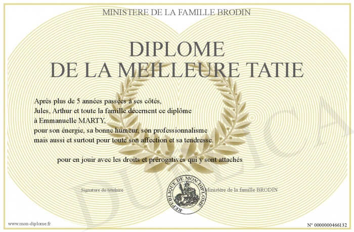 Envoyez par email votre Diplôme de la meilleure Tatie personalisé