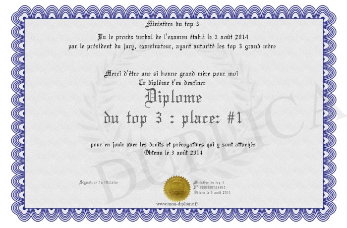 Envoyez par email votre Diplôme du top 3 : place: #1 personalisé