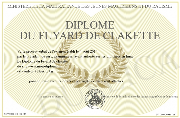 Envoyez par email votre Diplôme du fuyard de clakette personalisé