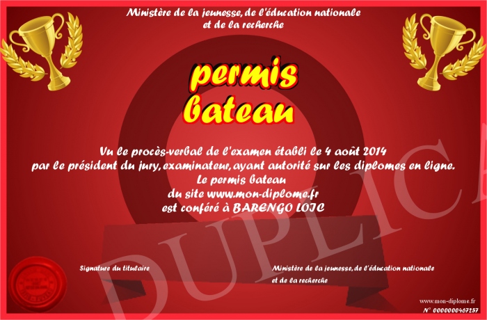 Envoyez par email votre permis bateau personalisé