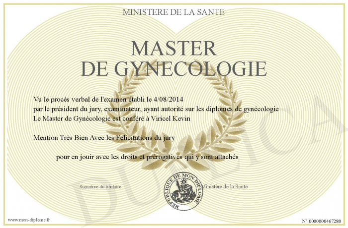 Envoyez par email votre Master de Gynécologie personalisé