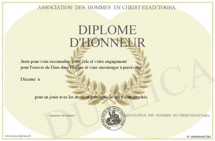 Envoyez par email votre Diplôme d'Honneur personalisé