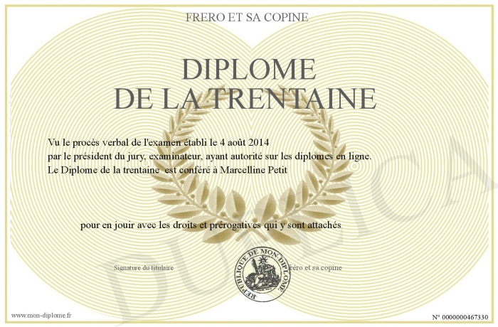 Envoyez par email votre Diplôme de la trentaine personalisé