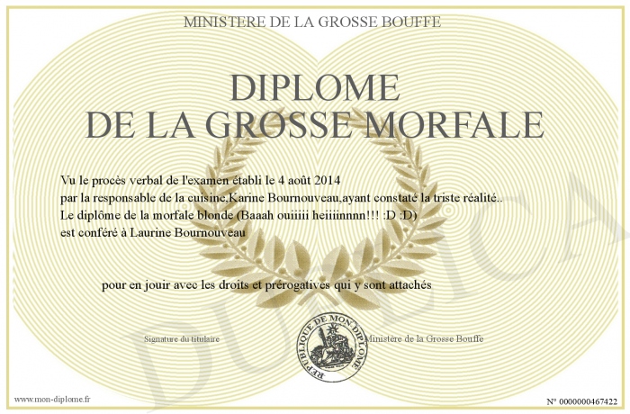 Envoyez par email votre Diplome de la grosse morfale personalisé
