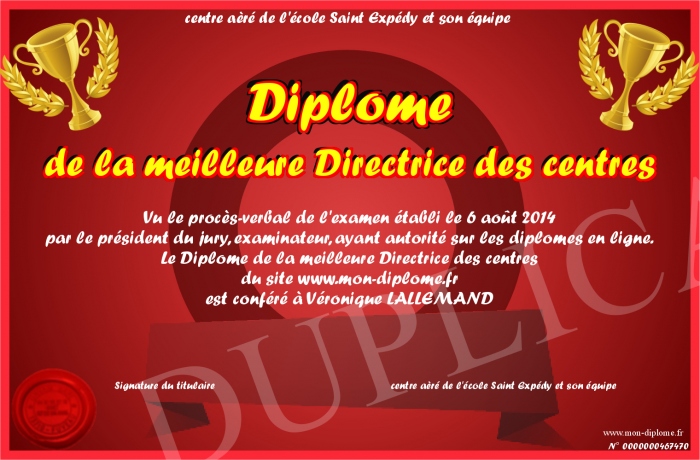 Envoyez par email votre Diplôme de la meilleure Directrice des centres personalisé