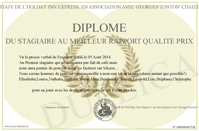 Envoyez par email votre Diplôme du stagiaire au meilleur rapport qualité prix personalisé