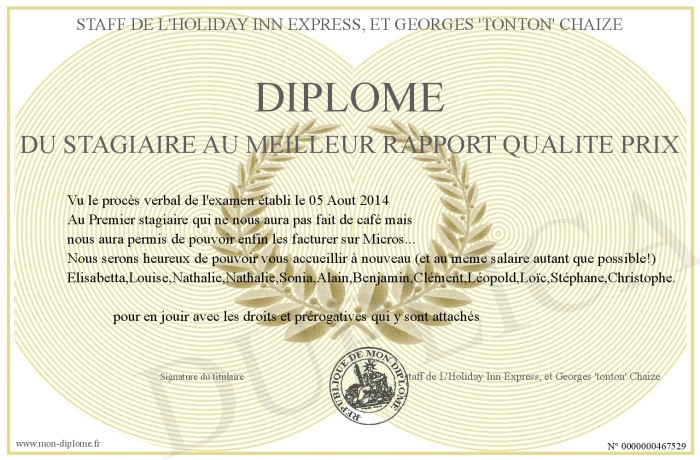 Envoyez par email votre Diplôme du stagiaire au meilleur rapport qualité prix personalisé