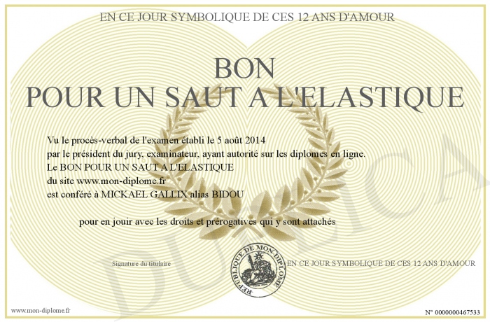Envoyez par email votre BON POUR UN SAUT A L'ELASTIQUE personalisé