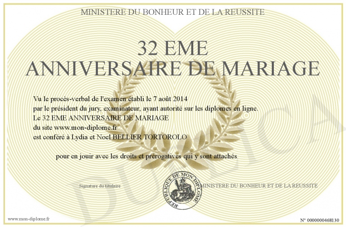 Envoyez par email votre 32 EME ANNIVERSAIRE DE MARIAGE personalisé