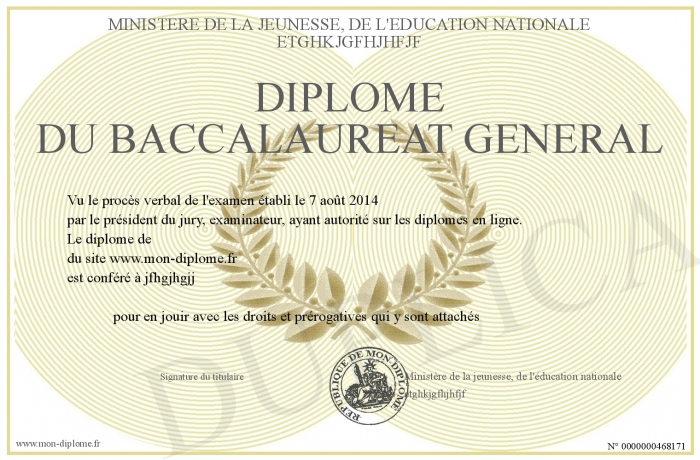 Envoyez par email votre Diplôme du baccalaureat général personalisé