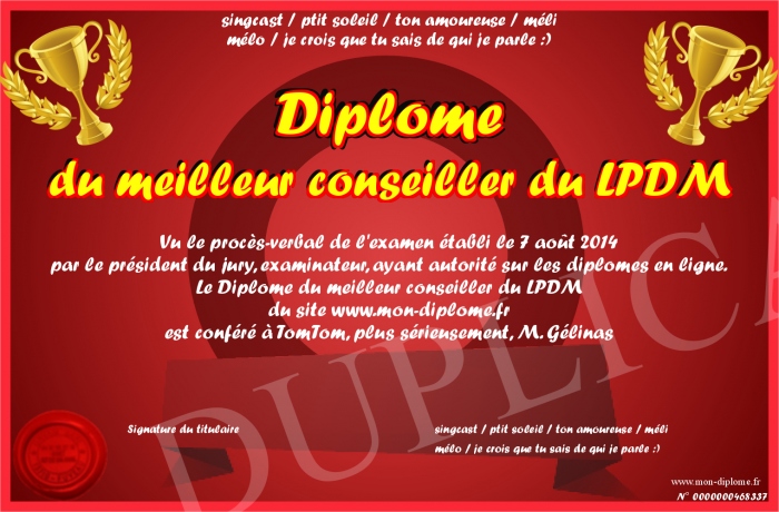 Envoyez par email votre Diplôme du meilleur conseiller du LPDM personalisé