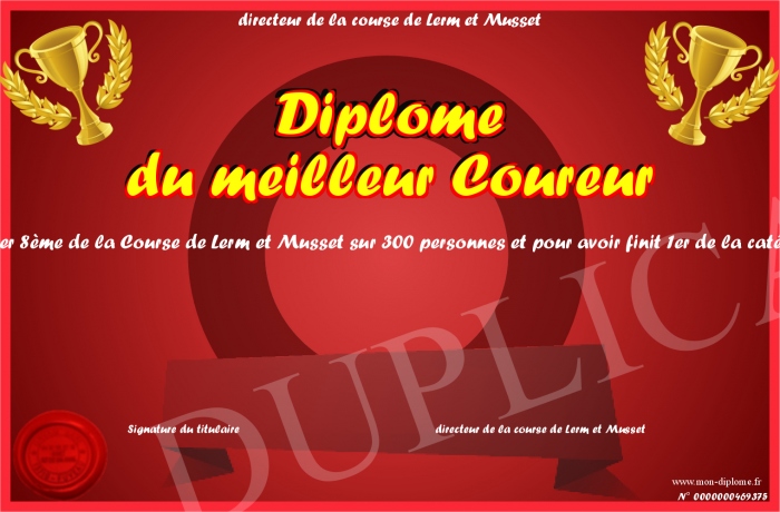 Envoyez par email votre Diplôme du meilleur Coureur personalisé