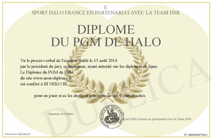 Envoyez par email votre Diplôme du PGM de Halo personalisé