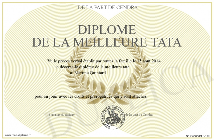 Envoyez par email votre Diplôme de la meilleure tata personalisé