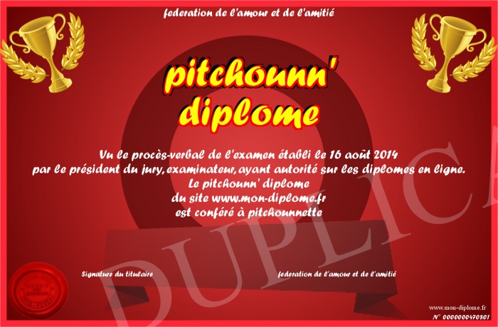 Envoyez par email votre pitchounn' diplôme personalisé