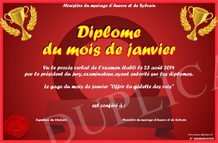 Envoyez par email votre Diplôme du mois de janvier personalisé