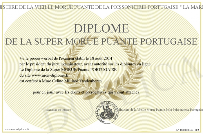 Envoyez par email votre Diplôme de la Super MORUE Puante PORTUGAISE personalisé
