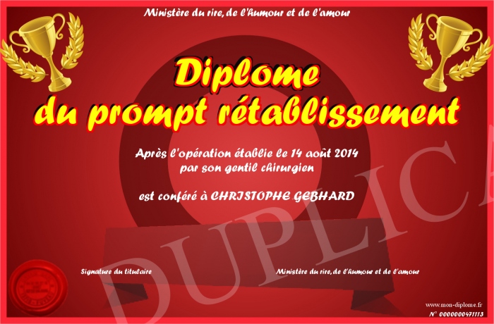 Envoyez par email votre Diplôme du prompt rétablissement personalisé