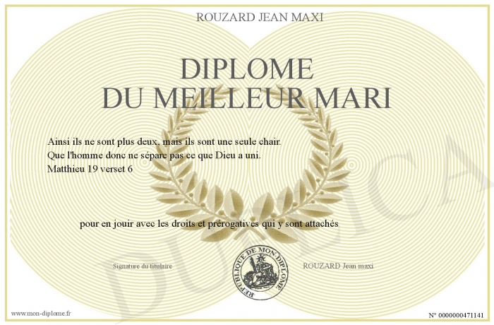 Envoyez par email votre Diplôme du meilleur mari personalisé