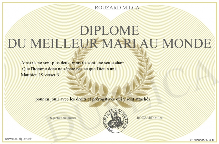 Envoyez par email votre Diplôme du meilleur mari au monde personalisé
