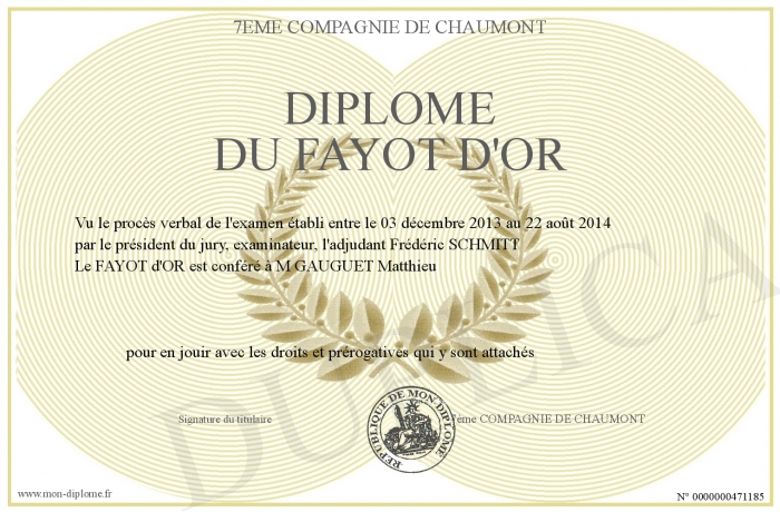Envoyez par email votre Diplôme du FAYOT D'OR personalisé