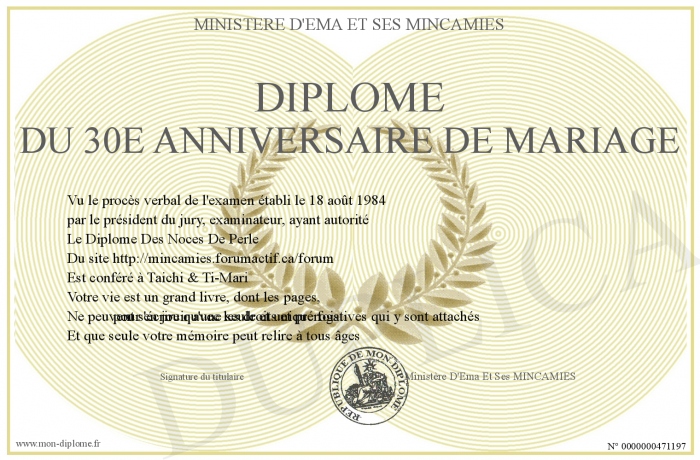 Envoyez par email votre Diplôme Du 30e Anniversaire De Mariage personalisé