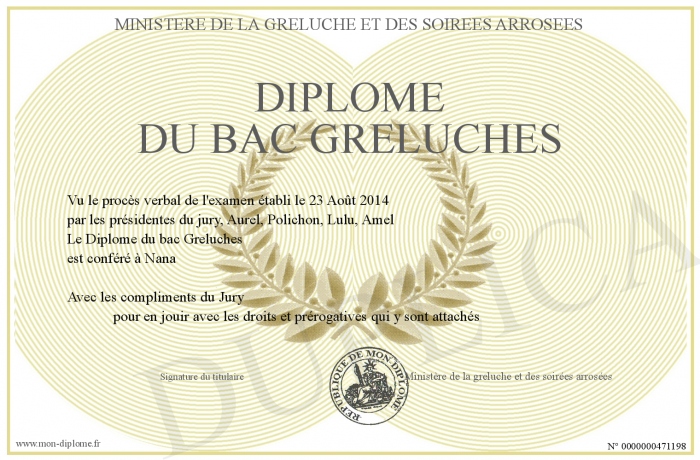 Envoyez par email votre Diplôme du bac Greluches personalisé