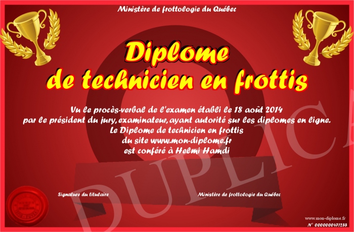 Envoyez par email votre Diplôme de technicien en frottis personalisé