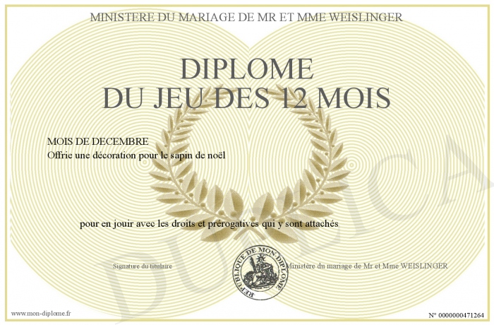Envoyez par email votre Diplôme du jeu des 12 Mois personalisé
