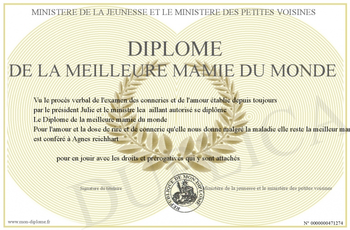 Envoyez par email votre Diplôme de la meilleure mamie du monde personalisé