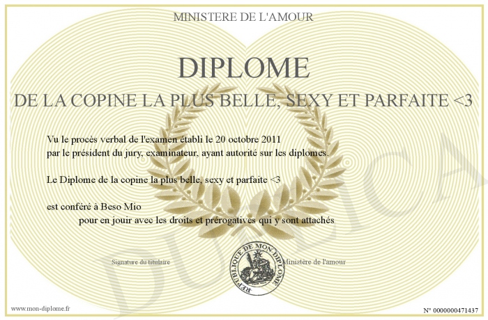 Envoyez par email votre Diplôme de la copine la plus belle, sexy et parfaite -3 personalisé