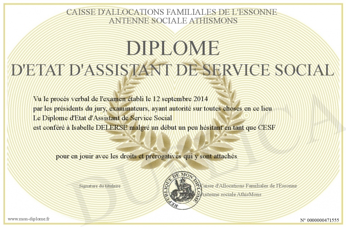 Envoyez par email votre Diplôme d'Etat d'Assistant de Service Social personalisé