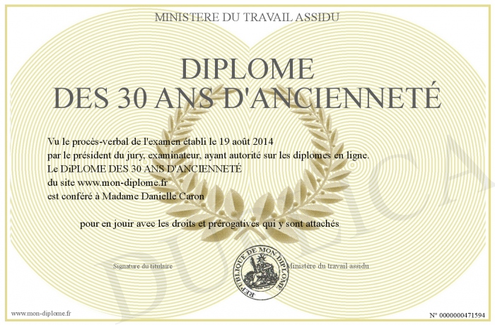 Envoyez par email votre DiPLOME DES 30 ANS D'ANCIENNETÉ personalisé