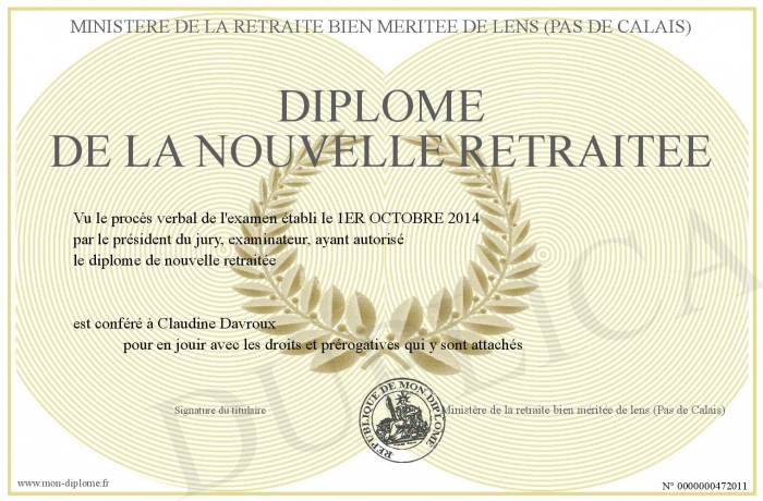 Envoyez par email votre Diplôme de la nouvelle retraitée personalisé