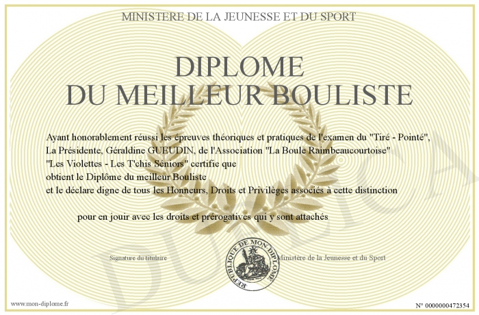 Envoyez par email votre Diplôme du Meilleur Bouliste personalisé