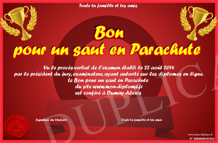 Envoyez par email votre Bon pour un saut en Parachute personalisé