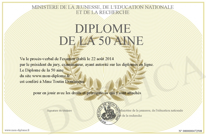 Envoyez par email votre Diplôme de la 50 aine personalisé