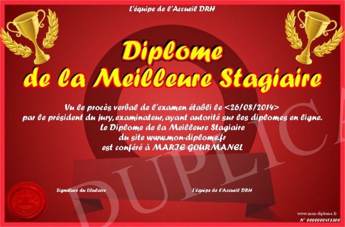 Envoyez par email votre Diplôme de la Meilleure Stagiaire personalisé