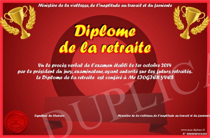 envoyé par le Ministère de la viellesse, de l'inaptitude au travail et du farniente !