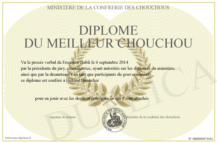Envoyez par email votre Diplôme du meilleur chouchou personalisé