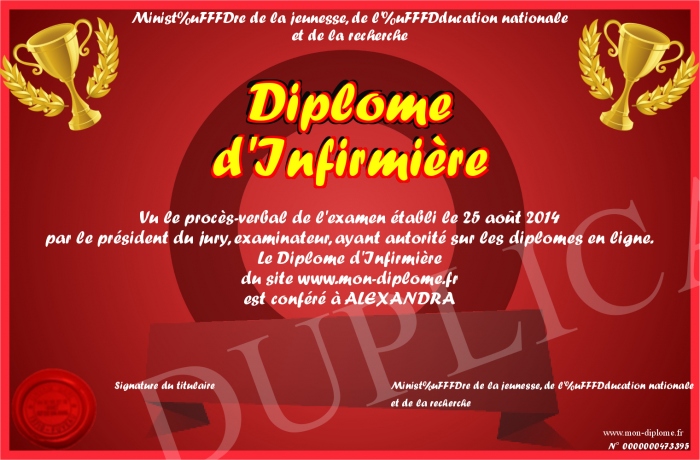 Envoyez par email votre Diplôme d'Infirmière personalisé