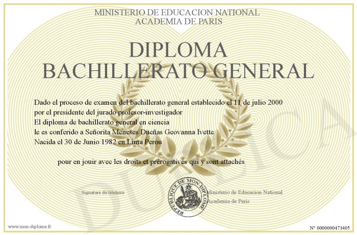 Envoyez par email votre Diploma Bachillerato General personalisé