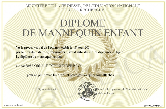 Envoyez par email votre Diplôme de mannequin enfant personalisé