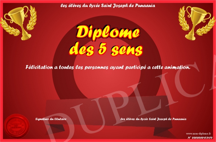 Envoyez par email votre Diplôme des 5 sens personalisé