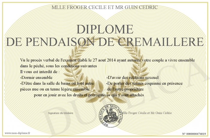 Envoyez par email votre DIPLOME DE PENDAISON DE CREMAILLERE personalisé