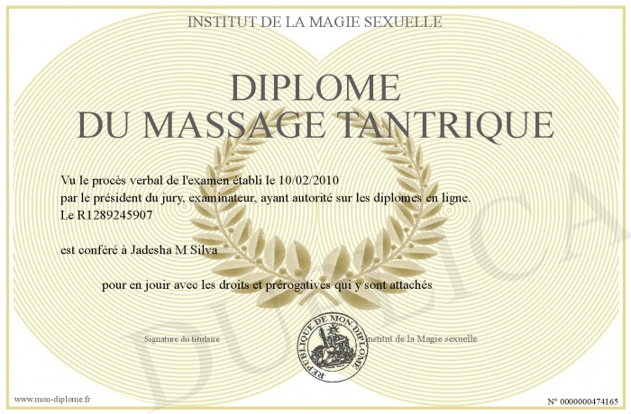 Envoyez par email votre Diplôme du massage tantrique personalisé