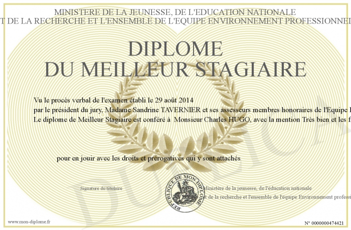 Envoyez par email votre Diplôme du Meilleur Stagiaire personalisé