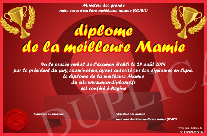 Envoyez par email votre diplome de la meilleure Mamie personalisé
